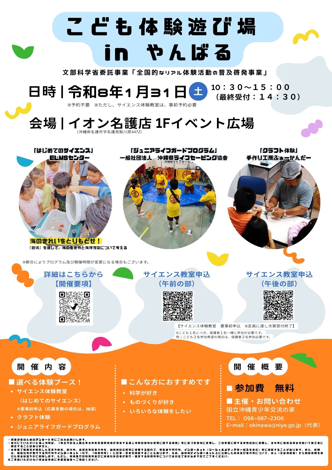 ●参加費 無料(サイエンス体験教室も無料)